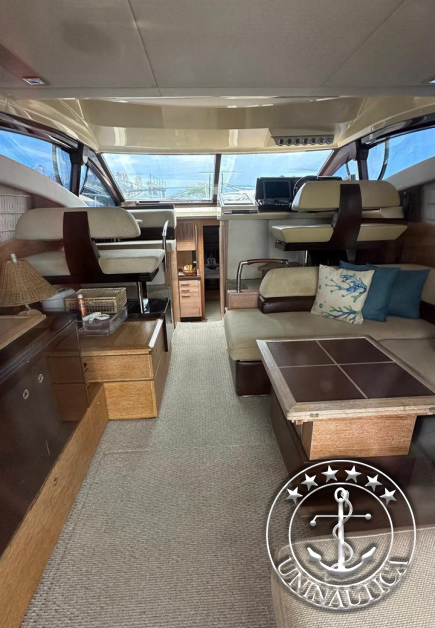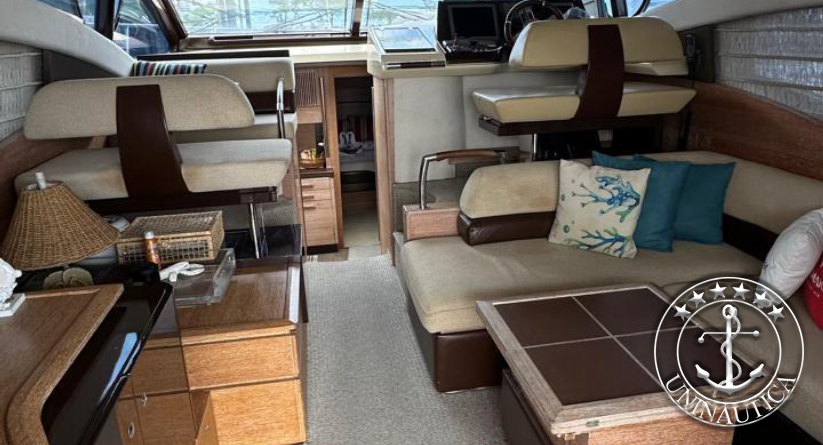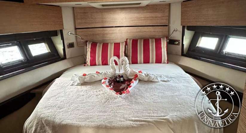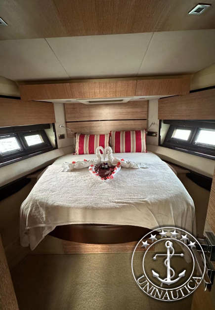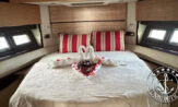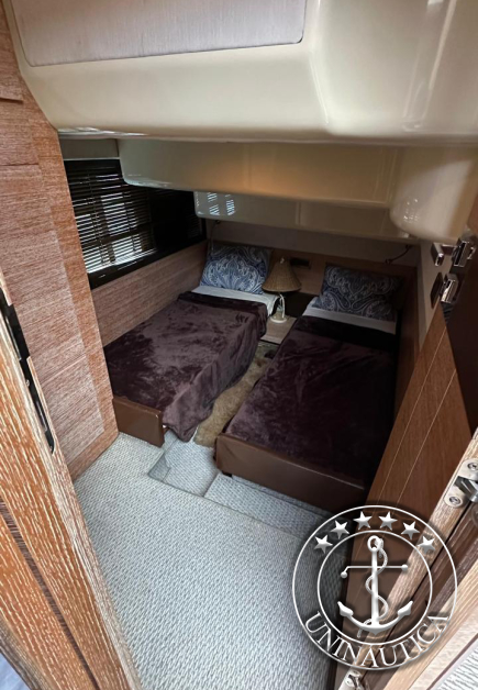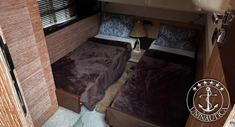 Ela possui 3 cabines (Suíte Master na proa, suíte VIP e uma cabine com duas camas de solteiro) mais a cabine de marinheiro.